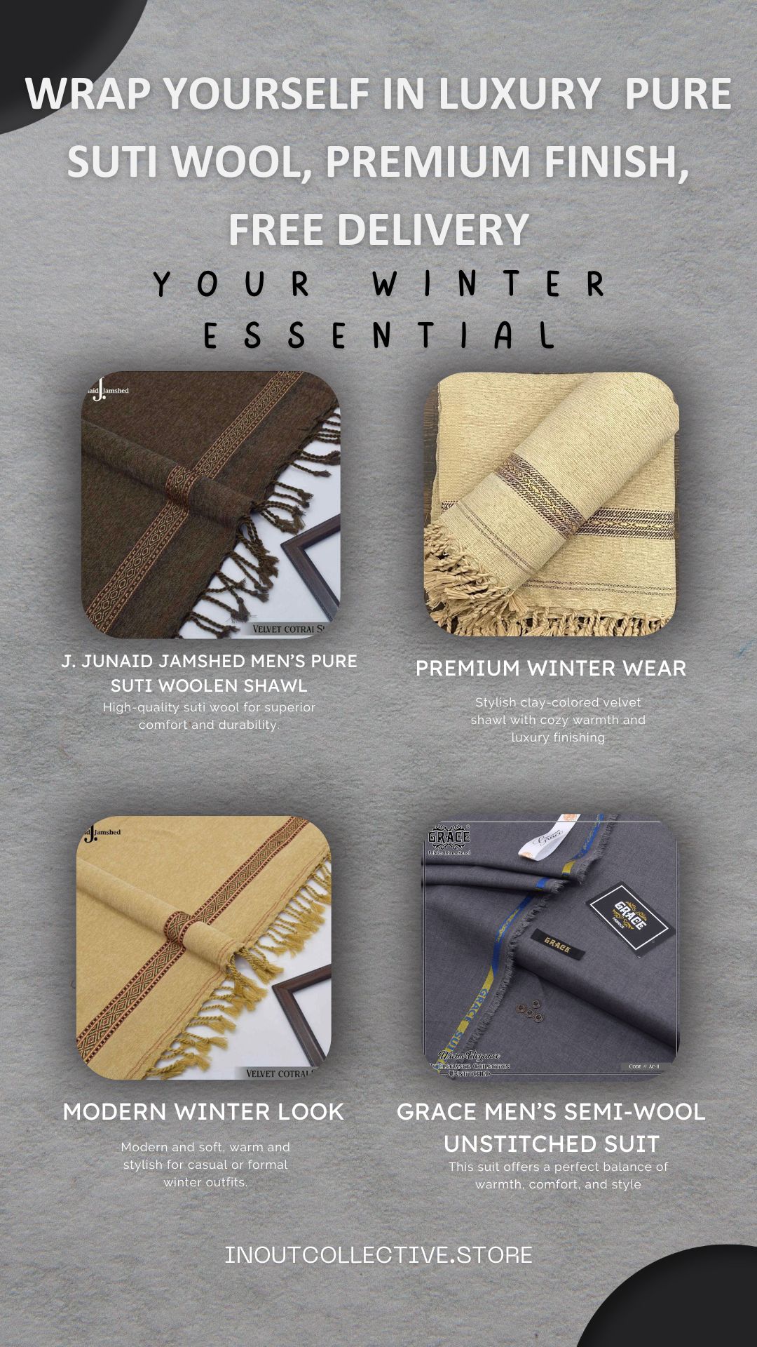 J. Junaid Jamshed Men’s Pure Suti Woolen Winter Shawl – 14 Colors | Guaranteed Quality